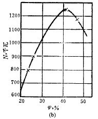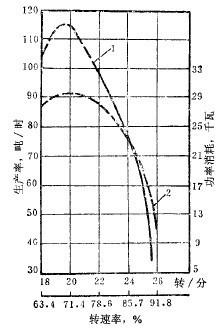 于71~75%范圍內(nèi)磨機的處理能力更高,轉(zhuǎn)速率低于或高于這個范圍時處理能力便趨于降低。磨機輸入功率與轉(zhuǎn)速率的關(guān)系和生產(chǎn)率與轉(zhuǎn)速率的關(guān)系相似,按磨碎每噸產(chǎn)品的動力消耗計,則一般隨轉(zhuǎn)速率降低而減少。