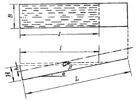 (b)分級機結構———分級機中礦粒群沉降的液面面積,稱為分級面積。分級面積的大小影響分級機處理能力并決定分級粒度。由于分級過程是發生在靠近表面層的水平礦漿流中,如3-4-16所示。礦粒在這層水平流中,一方面以自身的沉降速度v向下沉降,同時又被水平介質流帶動,以接近礦漿水平流速u的速度向溢流端行進。因此,它的運動方向是兩個速度的矢量和。粒度不同的兩個礦粒(假定密度和形狀相同)處于同一分級槽中,其水平流速一致,而兩礦粒沉降速度有別,于是合速度與水平面的夾角β也有差異。粗顆粒的β角大,運行到分級槽終端被溢流堰擋住,故留在槽內而成沉砂,細顆粒的β角小,運行到分級槽終端時,依然位于溢流堰上面,隨水平流從溢流口排出機外。