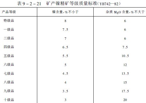 我國目前鎳礦床地質評價標準列于表9-2-18。