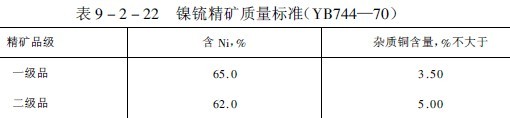 硫化鎳礦除含銅外,還伴生有鉑族金屬、鈷、金、銀、硒、碲等有價元素,評價標準列于表9-2-20。