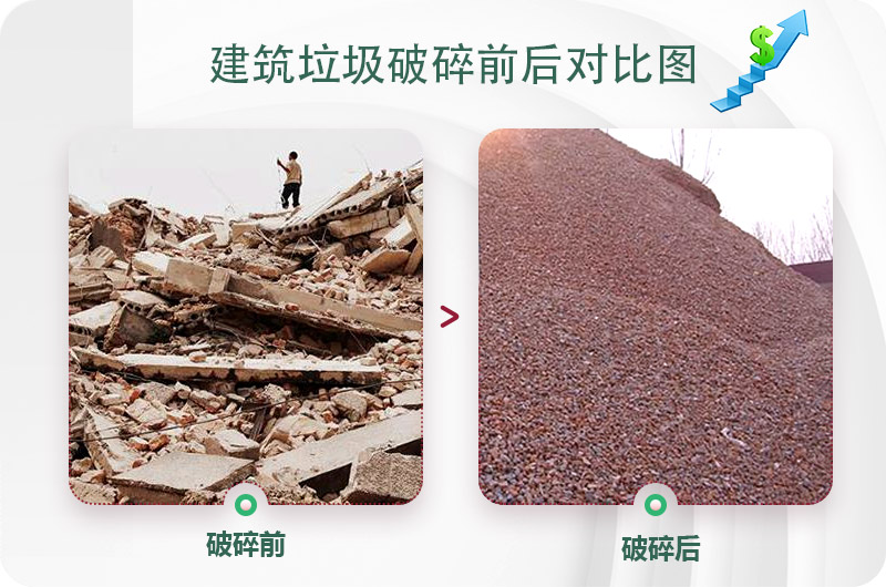 該現場移動式細碎機主要加工物料是建筑垃圾,產量70噸/小時,成品細膩、便于建筑垃圾在后期的利用